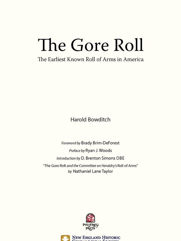 By Harold Bowditch Foreword by Brady Brim-DeForestPreface by Ryan J. WoodsIntroduction by D. Brenton Simons OBE“The Gore Roll and the Committee on Heraldry’s Roll of Arms” by Nathaniel Lane Taylor ...